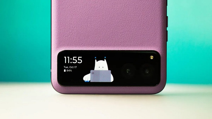 Le pliage mis à part, le design semble haut de gamme, avec un cadre et une charnière en aluminium poli, tandis que le revêtement en cuir végétal à l’arrière ajoute la texture nécessaire. La bande de verre sur la moitié supérieure du dos du smartphone couvre à la fois les deux caméras externes et le petit écran extérieur, donnant une allure élégante.