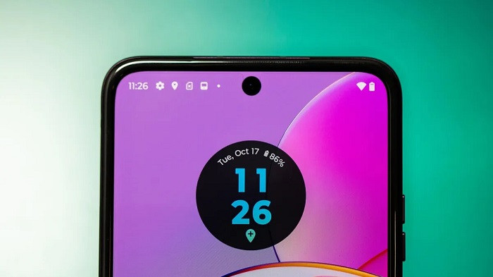 À la place de l’écran externe plus grand de son frère Razr 40 Ultra, le Razr 40 embarque un écran OLED de 1,5 pouce qui est trop petit pour afficher autre chose que l’heure, les notifications des applications et une poignée de raccourcis vers la météo, les événements du calendrier, les contacts, l’enregistrement vocal et plus encore. C’est à peu près aussi utile que de consulter les notifications et messages sur une montre connectée pour savoir si on a besoin d’ouvrir son téléphone. Et c’est également utile pour prendre des selfies avec les caméras arrière (bien plus nettes que celle située au-dessus de l’écran interne), mais cela nous laisse généralement sur notre faim.